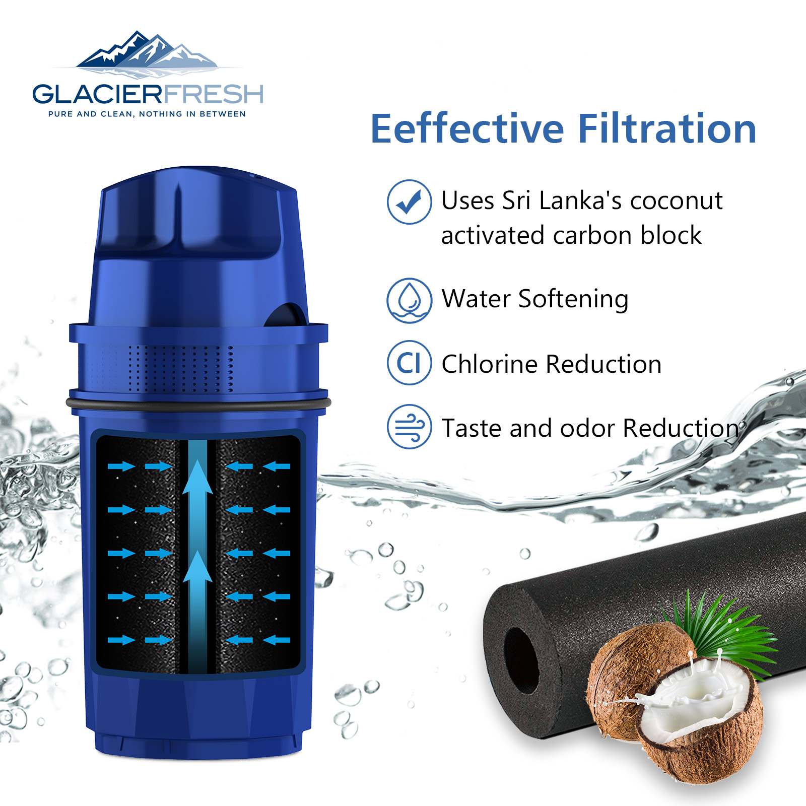 Pitcher Filter with Coconut Shell Carbon Block