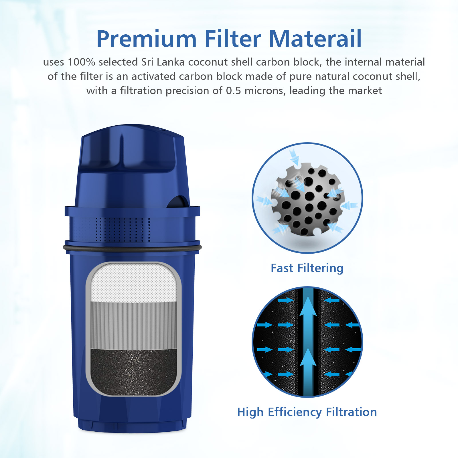 • Premium Material - Lead-free, BPA-free, use 100% selected coconut shell carbon block from Sri Lanka.